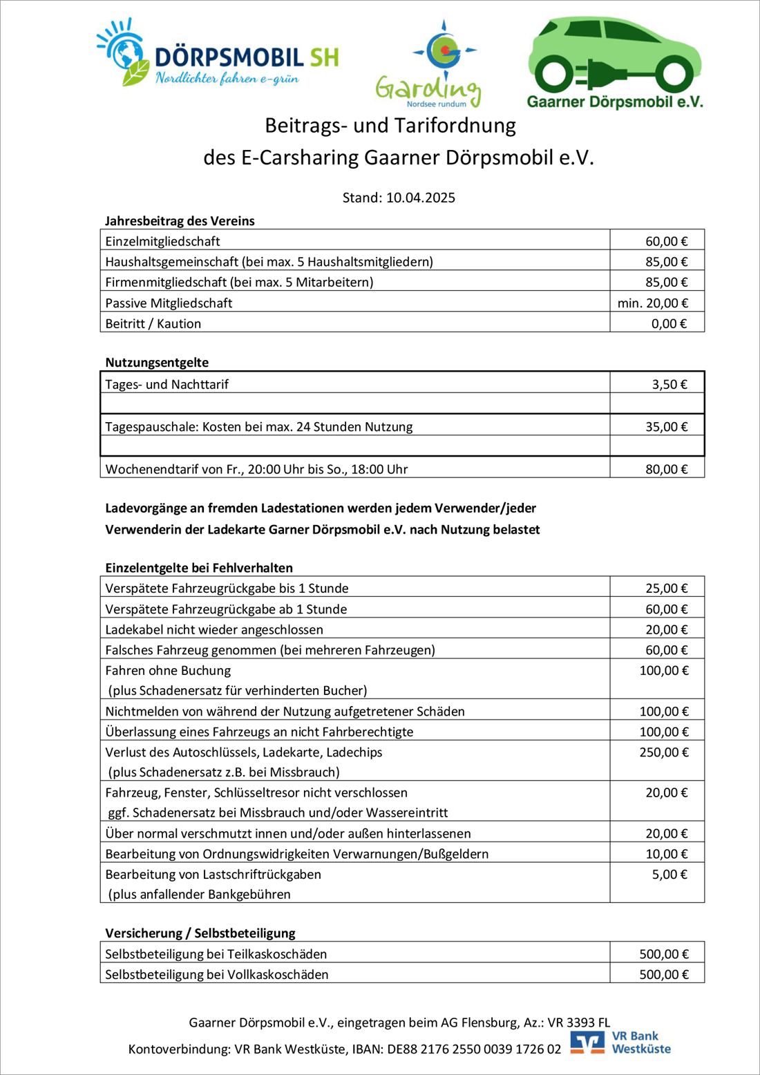 Beitrags- und Tarifordnung