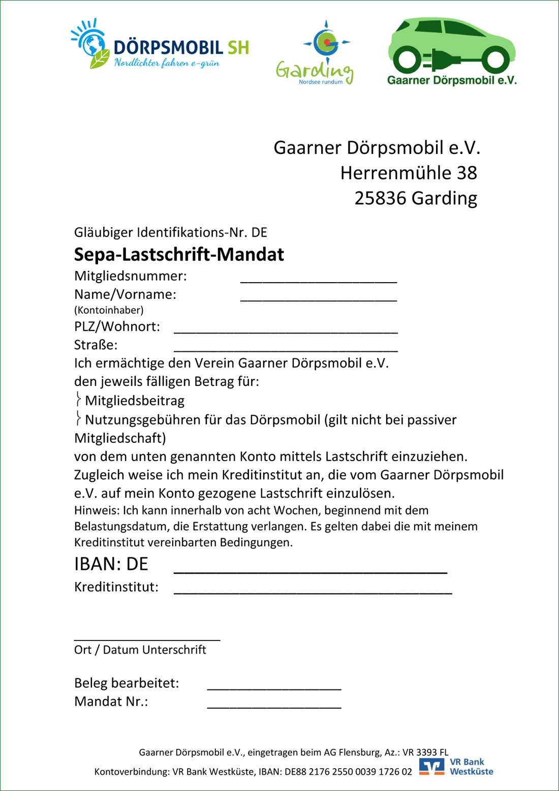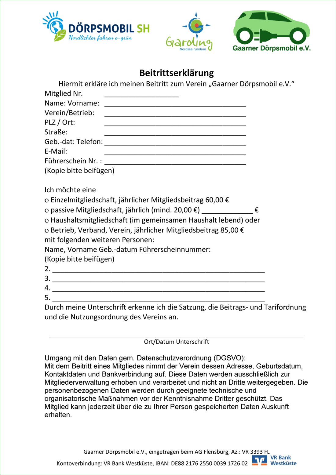 Klicke hier: PDF-Datei (Dokument mit 2 Seiten zu Ausdrucken) Bitte trage Deine Daten in das ausgedruckte Formular ein und schicke uns die Beitrittserklärung zu.